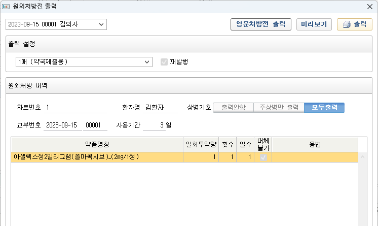 - 청구 환경 설정에서 판독소견서 자동 수록 옵션을 설정합니다.
