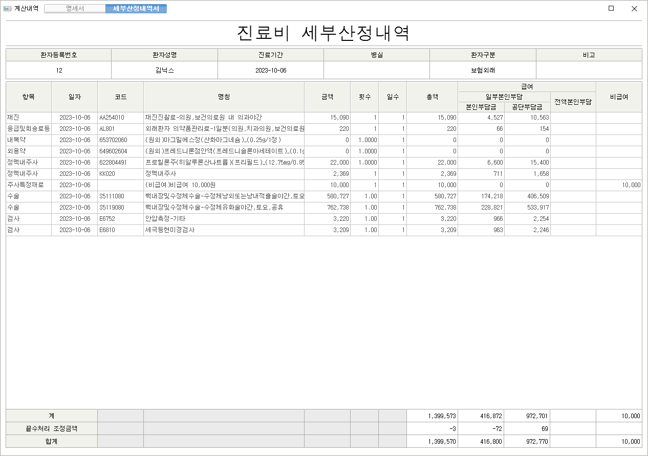 - 진료 - 계산 내역 창 세부산정내역서 표시 기능 추가