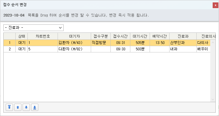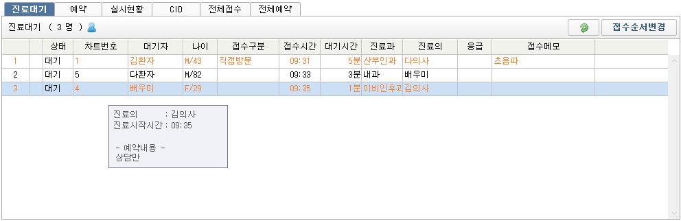 - 원무 - 접수 순서 변경 창에 예약 시간 항목 추가