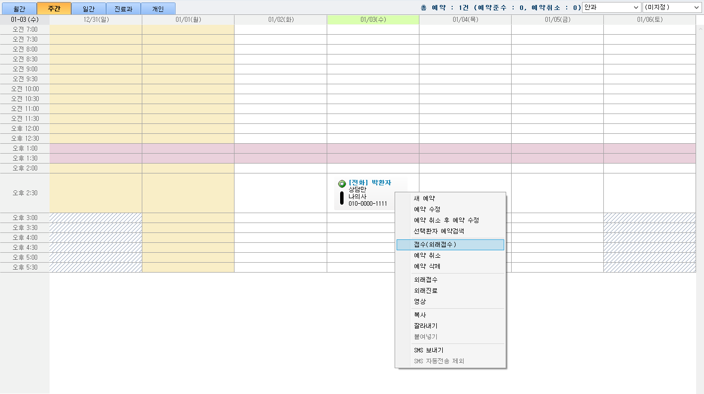 - 원무 - 예약 장부의 전화 예약 접수 (외래접수) 동작 변경