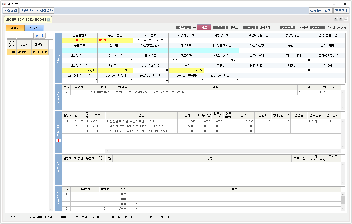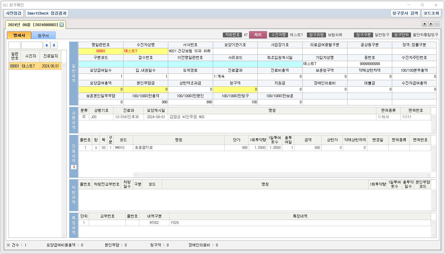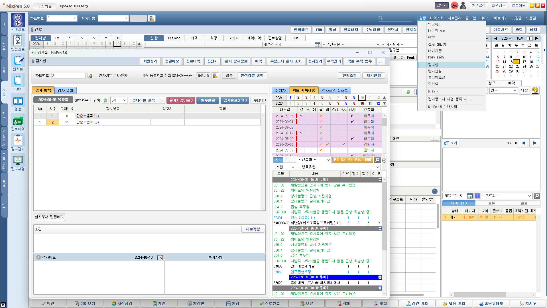 - 실행 메뉴에서 접근 시 실시부서가 별도 실행되며, 차트 환자 정보와 연동되지 않습니다.