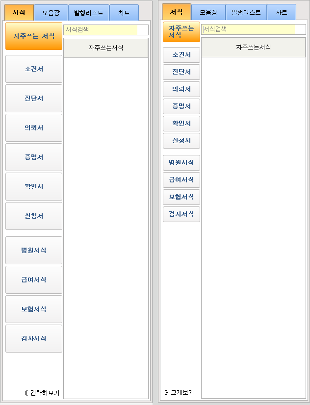 - 원무 - 진단서 서식 메뉴 간략히 보기 기능 추가