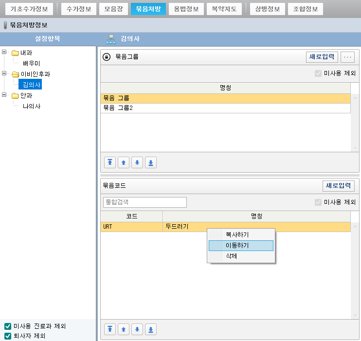 - 접수 업무 사용자 설정에서 예약 의사 옵션을 설정합니다.