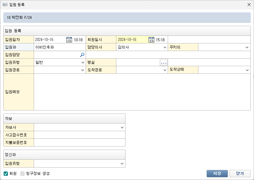 - 진료 - 입원 등록 중 퇴원 일자 를 입력할 수 있도록 기능 지원