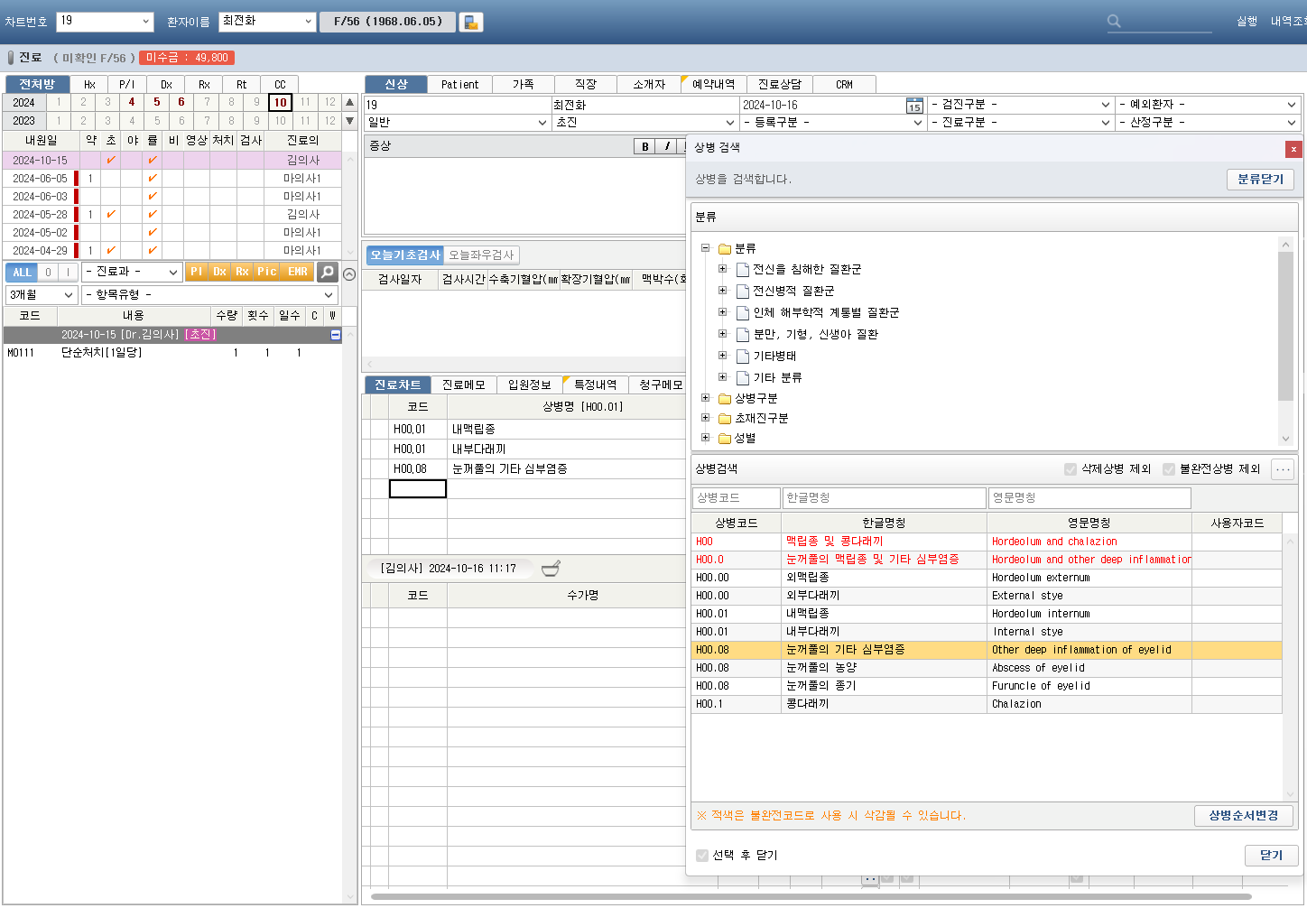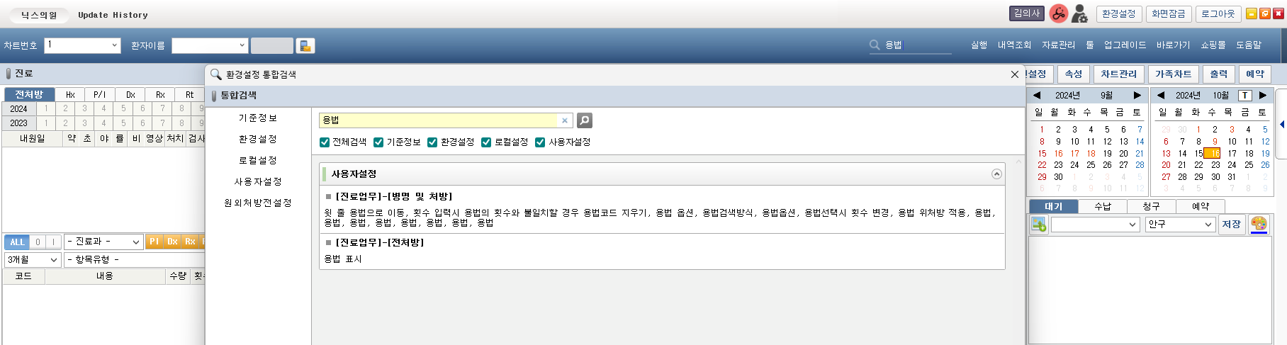 - 원무 - 상단 환경설정 통합 검색바 지원