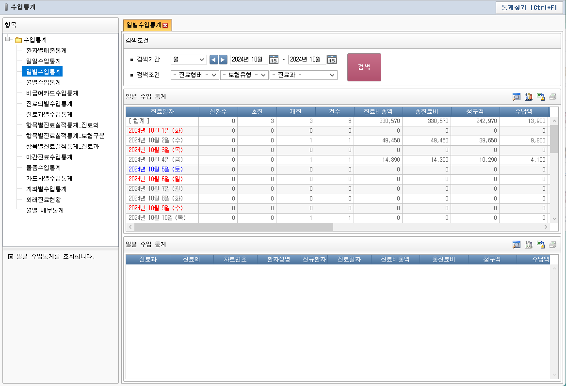 - 통계 - 일별 수입 통계 요일 표시 및 휴일 색상 구분 적용