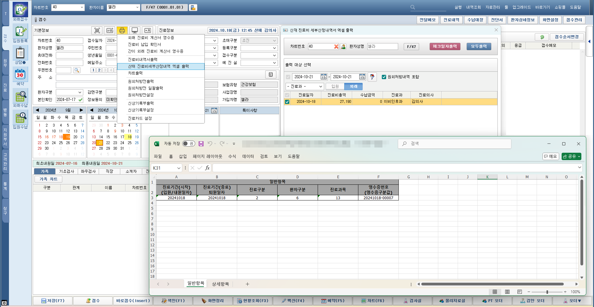 - 고시 - 산재 본인부담 치료비 세부 명세서 엑셀 내려받기 기능 추가